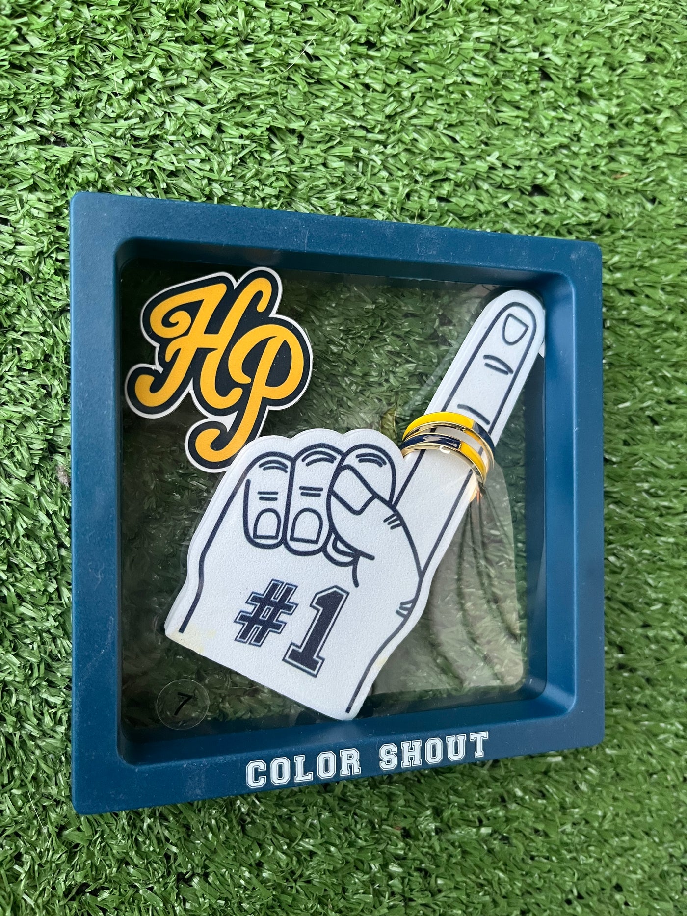 Comes on mini foam finger and packaged in a Color Shout re-usable frame.